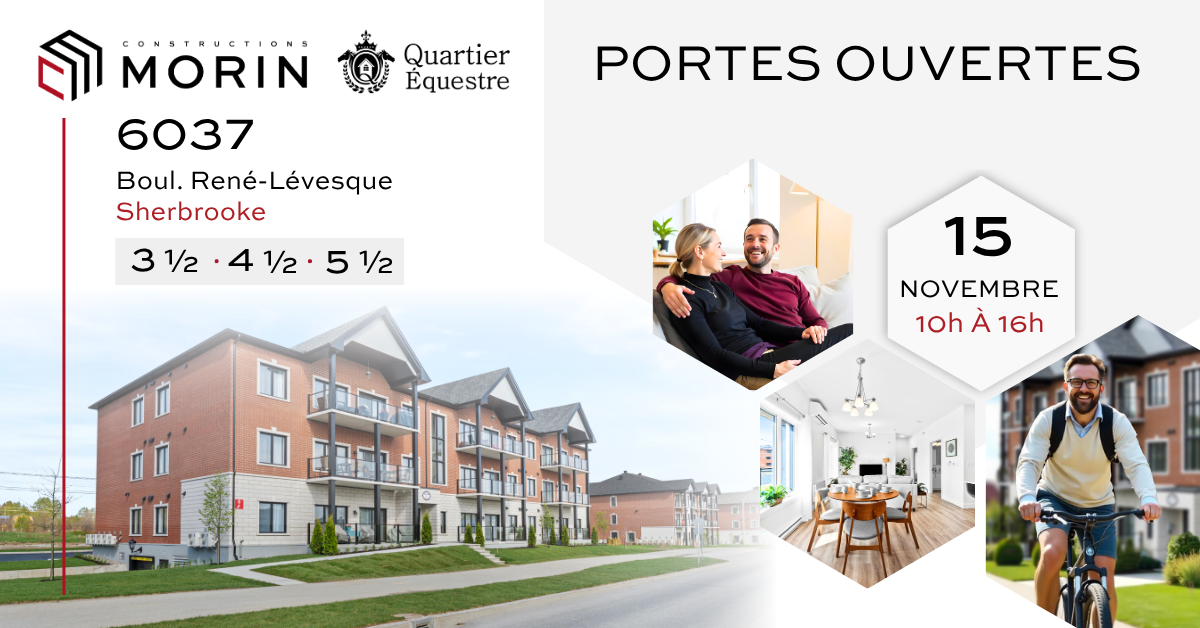 Rejoignez-nous le samedi 15 novembre de 10h à 16h pour découvrir nos merveilleux appartements dans le Quartier Équestre à Sherbrooke. Vous aurez la chance de visiter nos appartements 3 1/2, 4 1/2 et 5 1/2 pour réserver le vôtre pour l’année 2026!